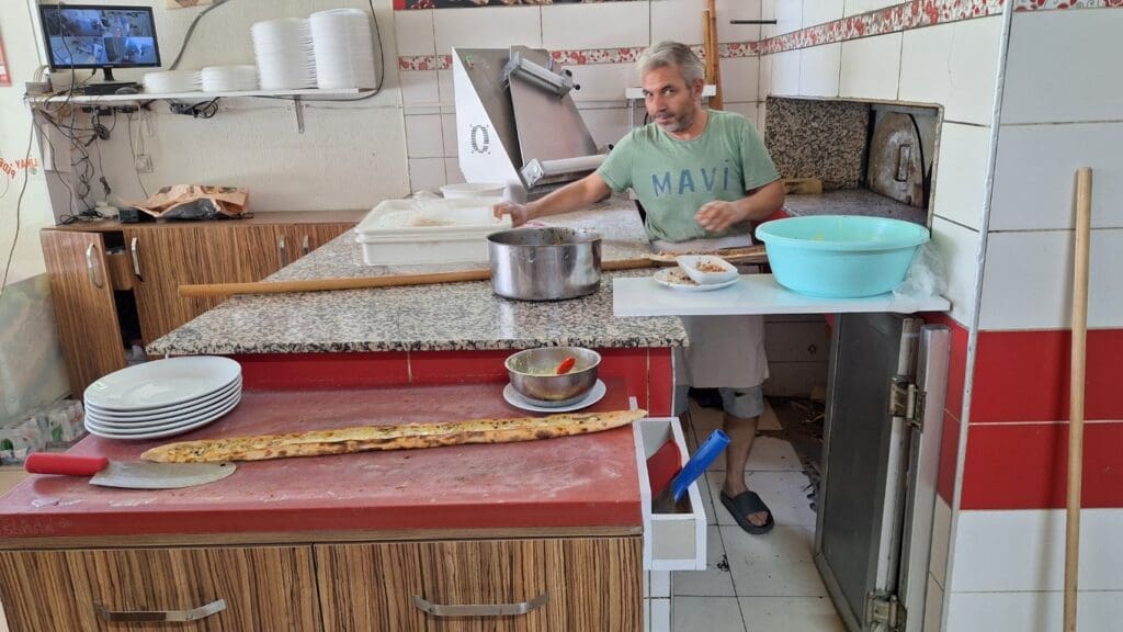 This is a local Turk’s idea of fast food. It’s called a pita and can be vegetarian or with different meats. I ate almost all of it. And the ovens are used just like our fire roasted pizzas.