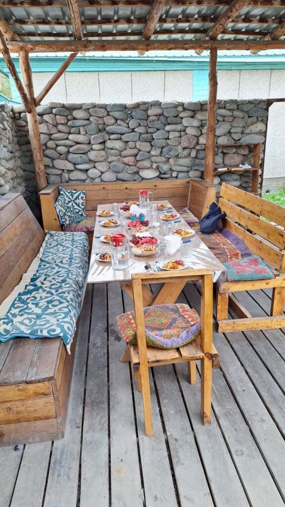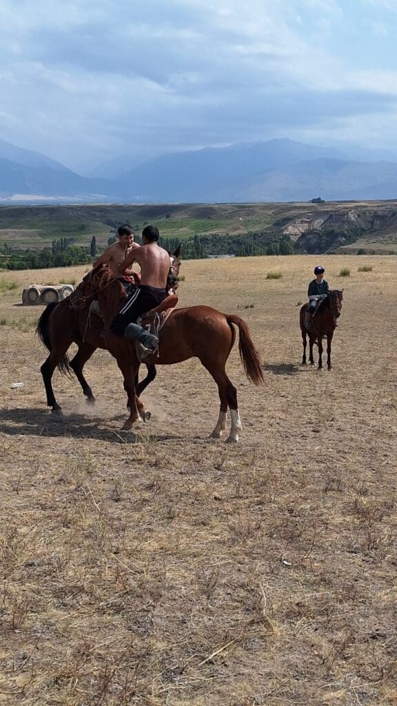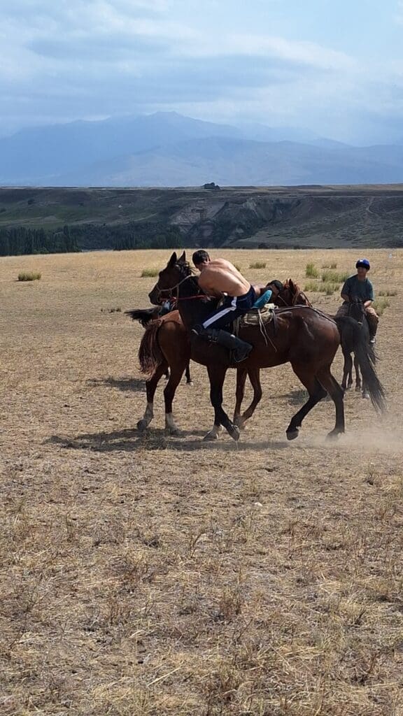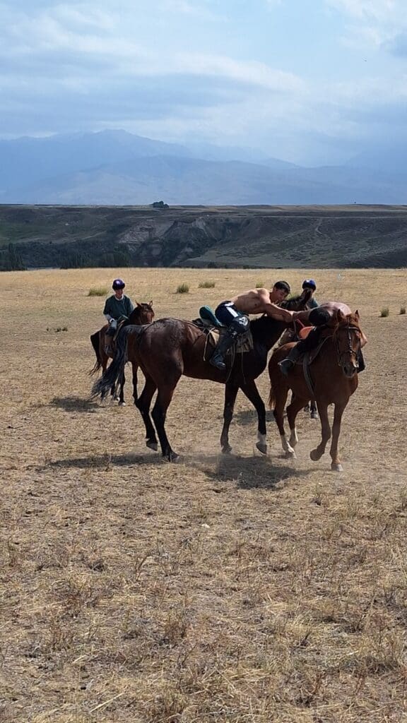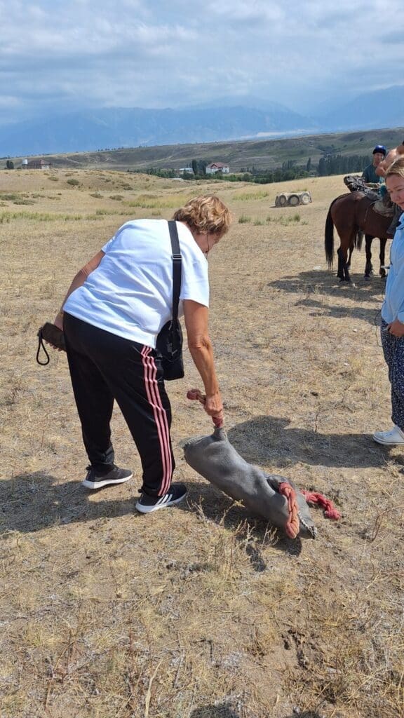They have 2 games on horses. Two teams of three man on horseback work to pick up a headless goat, keep it with them long enough to run to the end of the field and drop it into a hole. They do this many times and by the end of the game, the goat has been beaten and mauled enough that it is tenderized, and then cooked and eaten. Gate1 travel insists they use a 20-pound fake leather ‘goat’. I just think about the blood that gets beaten out of the real thing!
