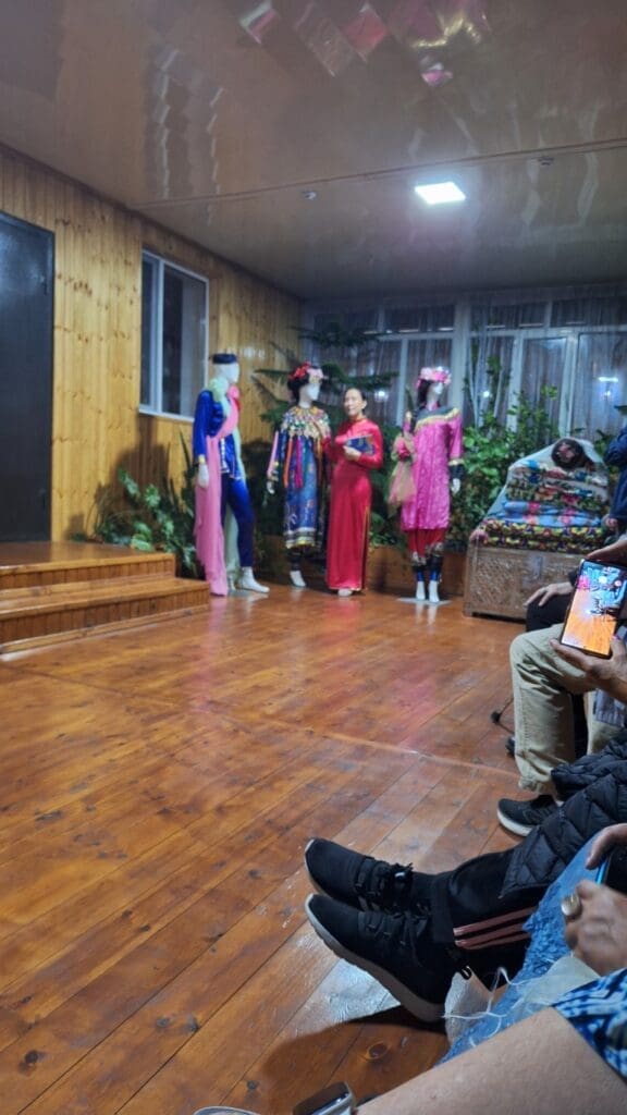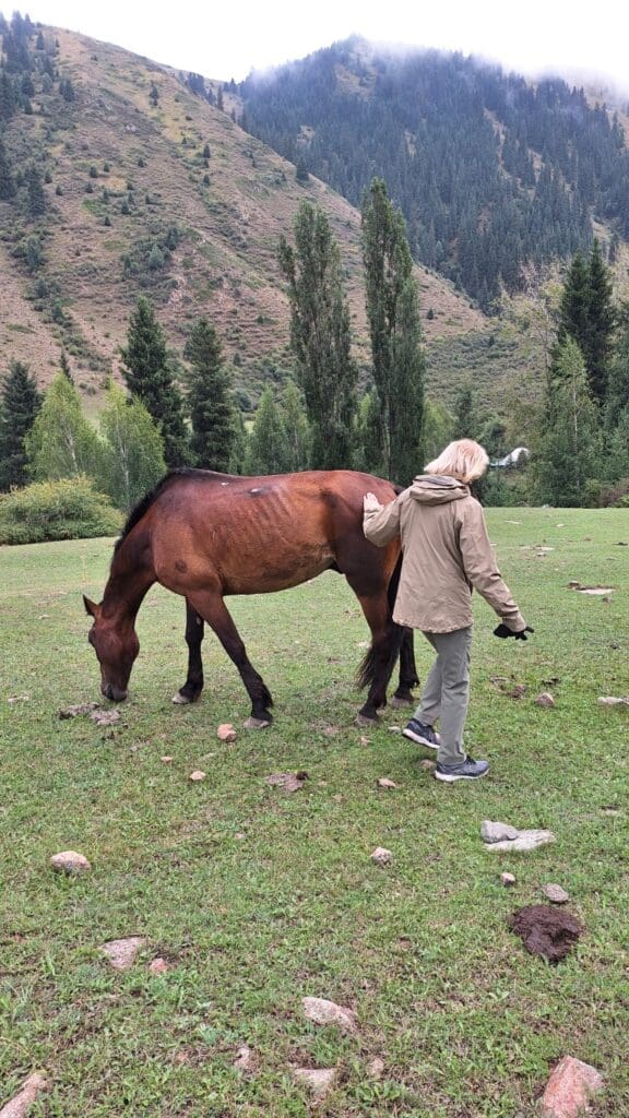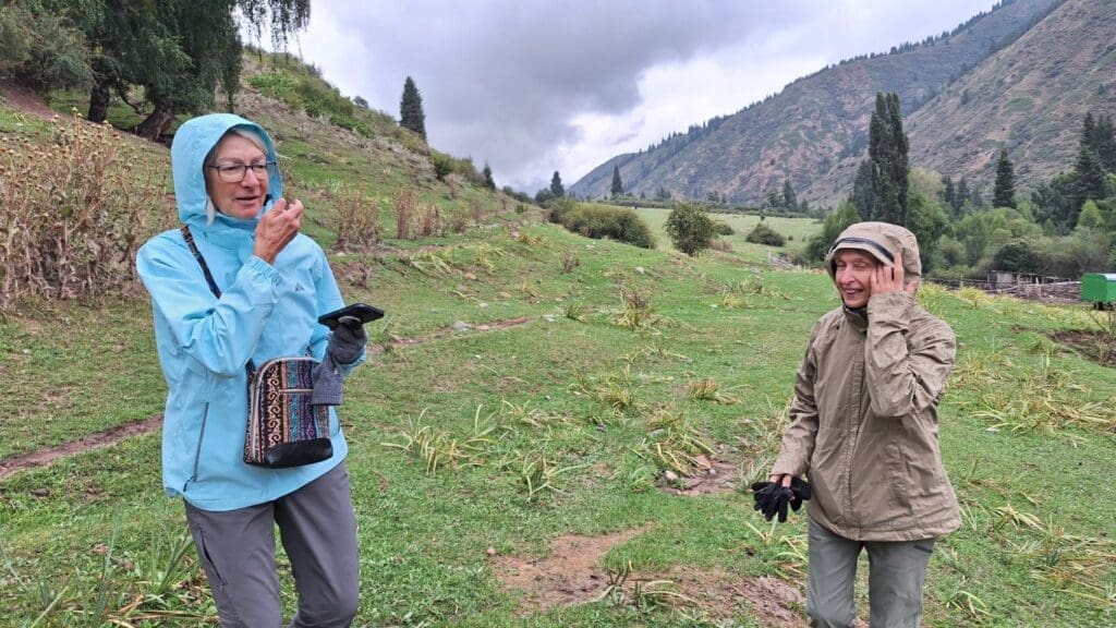 We had a typical Kyrg dinner at a woman’s home. After dinner we were taken into a family room where we saw costumes and clothes. The woman said she had a job other than head of household. People were guessing actress, seamstress, etc. when I blurted out dentist!! I ONLY did so remembering Liz’s female friend who is a dentist. I won these bags of green and black tea.
