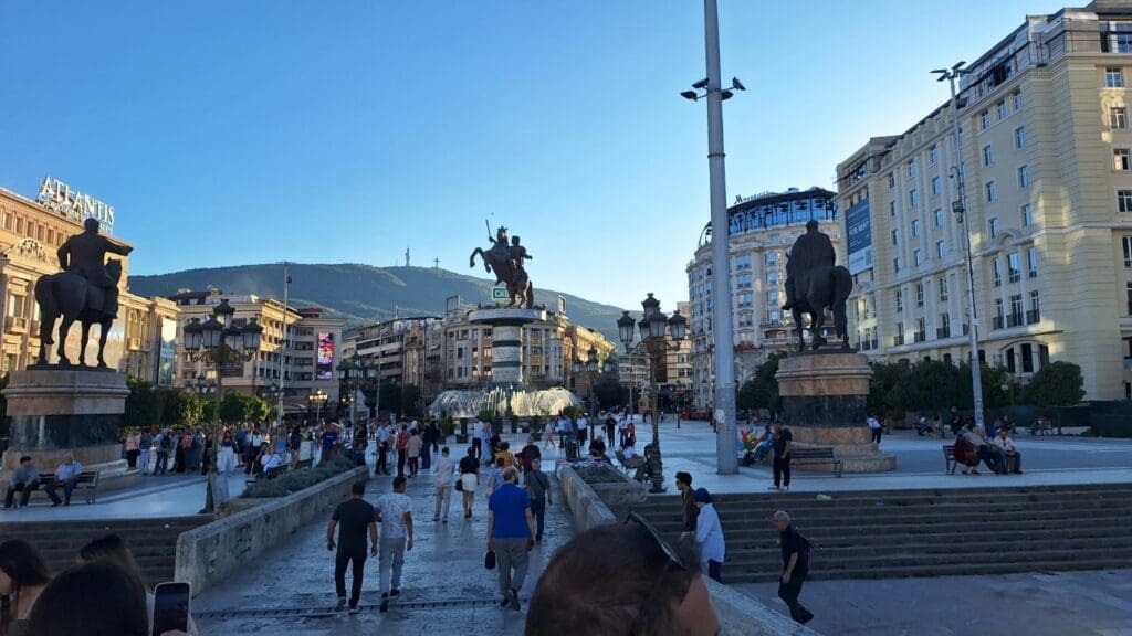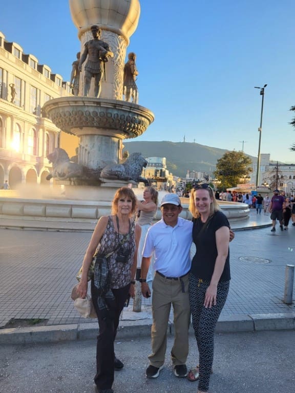 Miracles of miracles, we are walking through the Skopje downtown in North Macedonia and this blonde yells “Tom!” I look at her and think I don’t know any young blondes, when she says I’m Ina from Bolivia. Now I remember her. She was on our Bolivian tour. She lives in Germany and works for the VW plant. She said she reads my blogs all of the time. She was traveling with a German group.