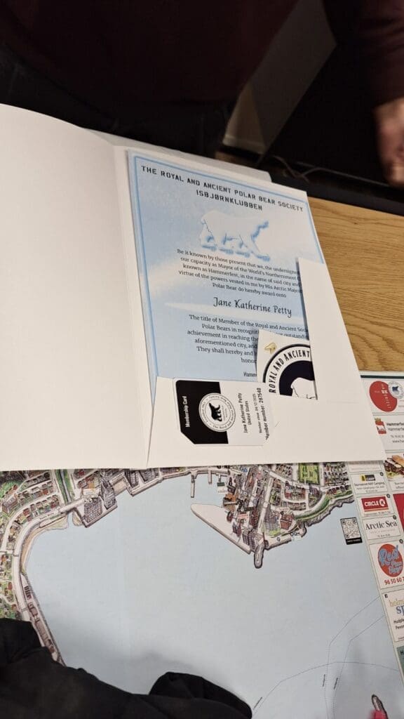 I now know an official member of The Royal and Ancient polar bear Society, and her name is Jane. It only cost her $46 bucks and it’s a lifetime membership.