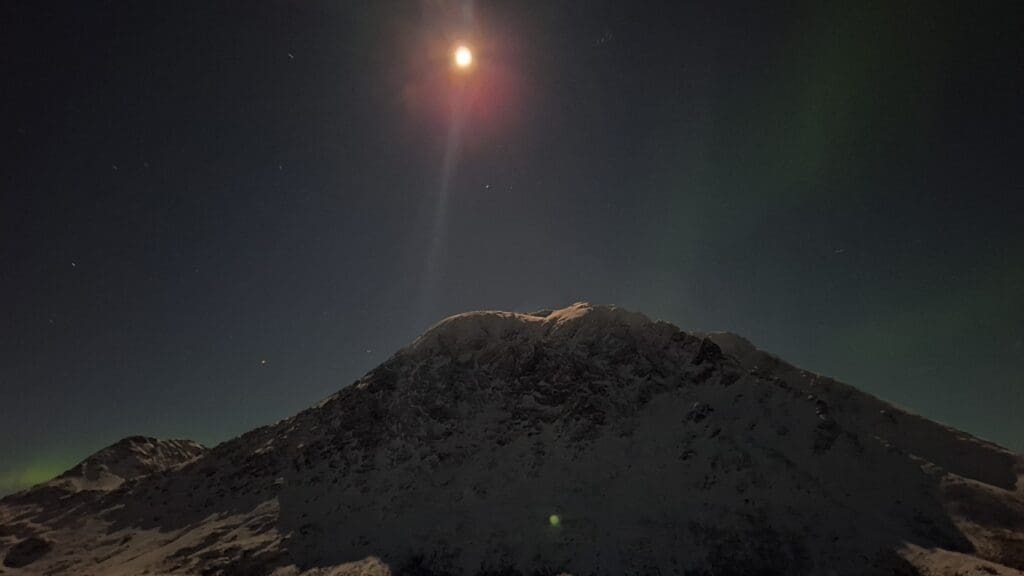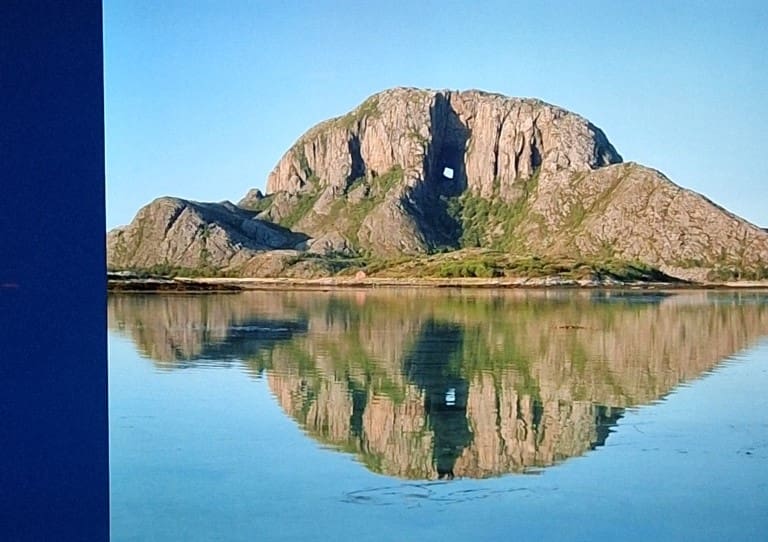 This was part of the folklore about how the Seven Sisters mountains were created. The woman the man chose for a wife ran from him and he aimed at her with the bow and arrow trying to kill her but he missed and he went right through a mountain right to the Hat of another man and that’s why there’s a hole in this mountain. Some of these things are just silly and made up — but they have nothing better to do in a place that’s dark for 24 hours a day.