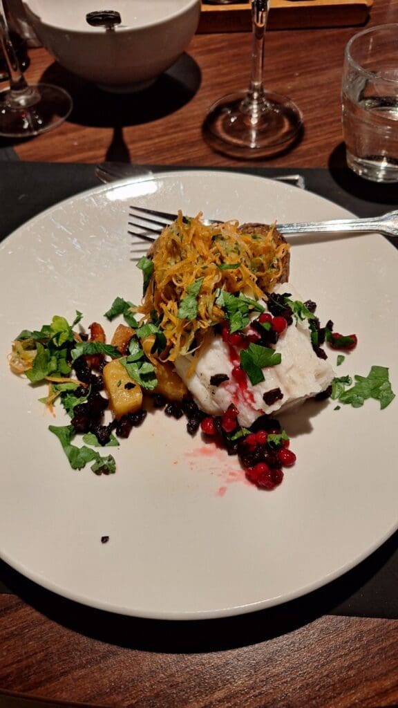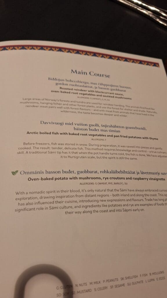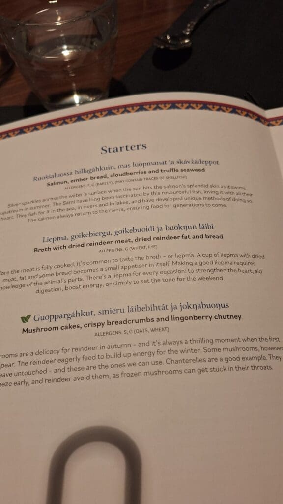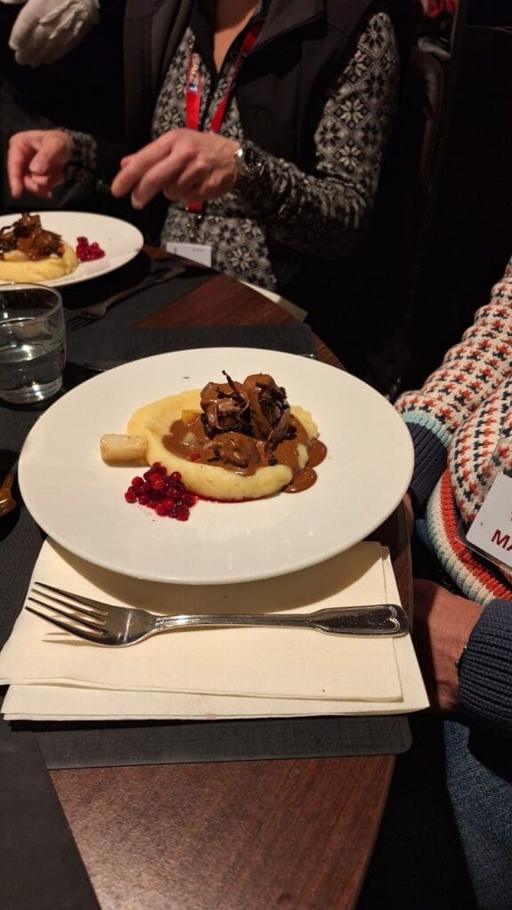 I ate a lot of fish and this brown pile of meat is reindeer!