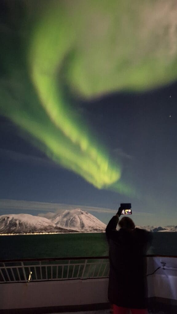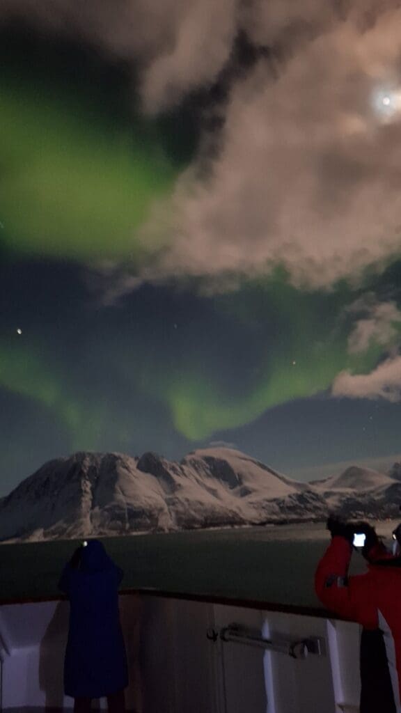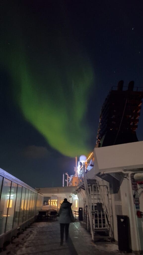 The loudspeakers on the ship would announce that the northern lights were available to see and people would just run outside like crazy freezing their butt off trying to get some pictures. So once I got some decent pictures I gladly stayed inside.